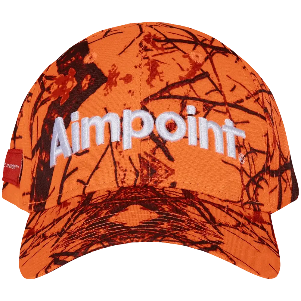 Aimpoint keps i orange camo. Snygg jaktkeps med hög synlighet och justerbar passform. Perfekt för säker jakt och fritid.