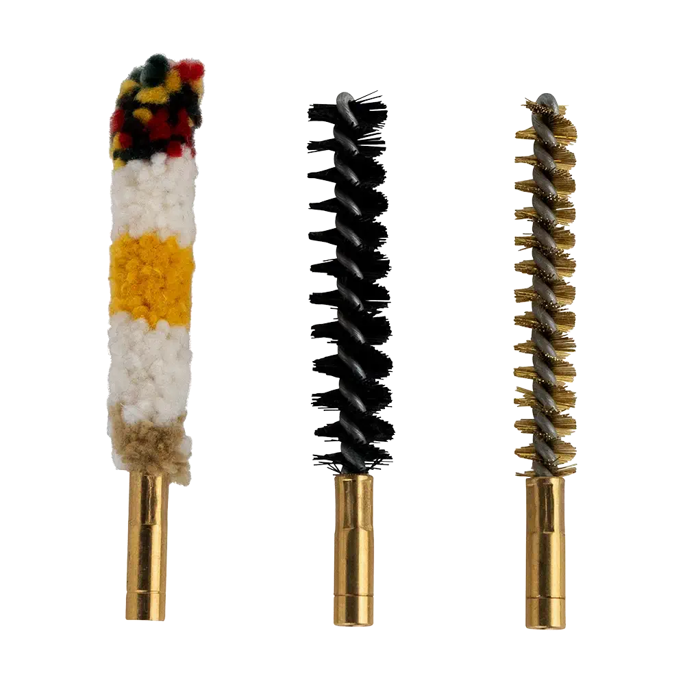 Praktiskt sett med 3 borstar för vapenrengöring. Paketet innehåller mässingsborste, nylonborste samt bomullsborste.
