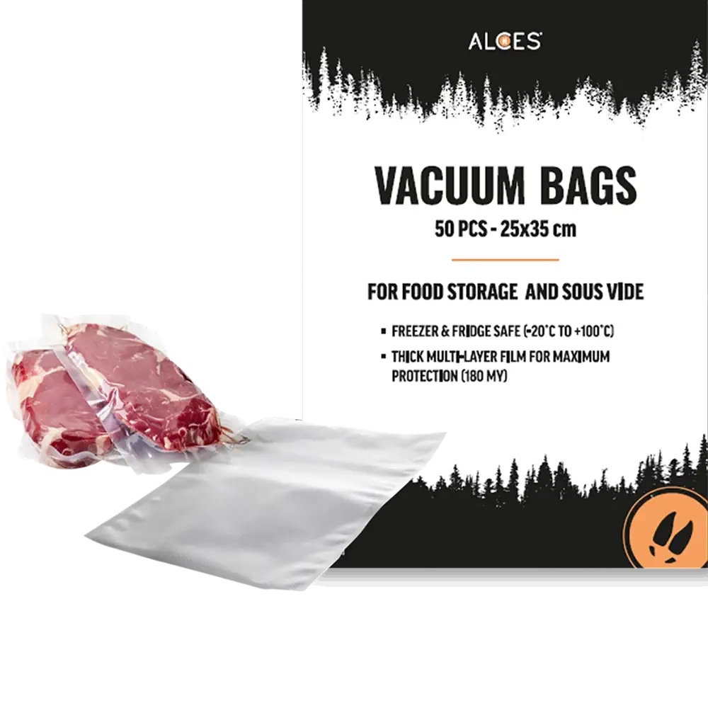 Alces vakuumpåsar är det perfekta tillbehöret för jägaren eller hemmakocken som vill ta hand om sina råvaror på bästa sätt. Genom att vakuumpacka kött, fisk eller grönsaker förlänger du hållbarheten avsevärt samtidigt som du skyddar maten mot frostskador och uttorkning i frysen. Storleken 25x35 cm är mycket mångsidig och passar utmärkt för allt från större styckningsdetaljer som stekar och filéer till rejäla portioner av köttfärs eller charkuterier.