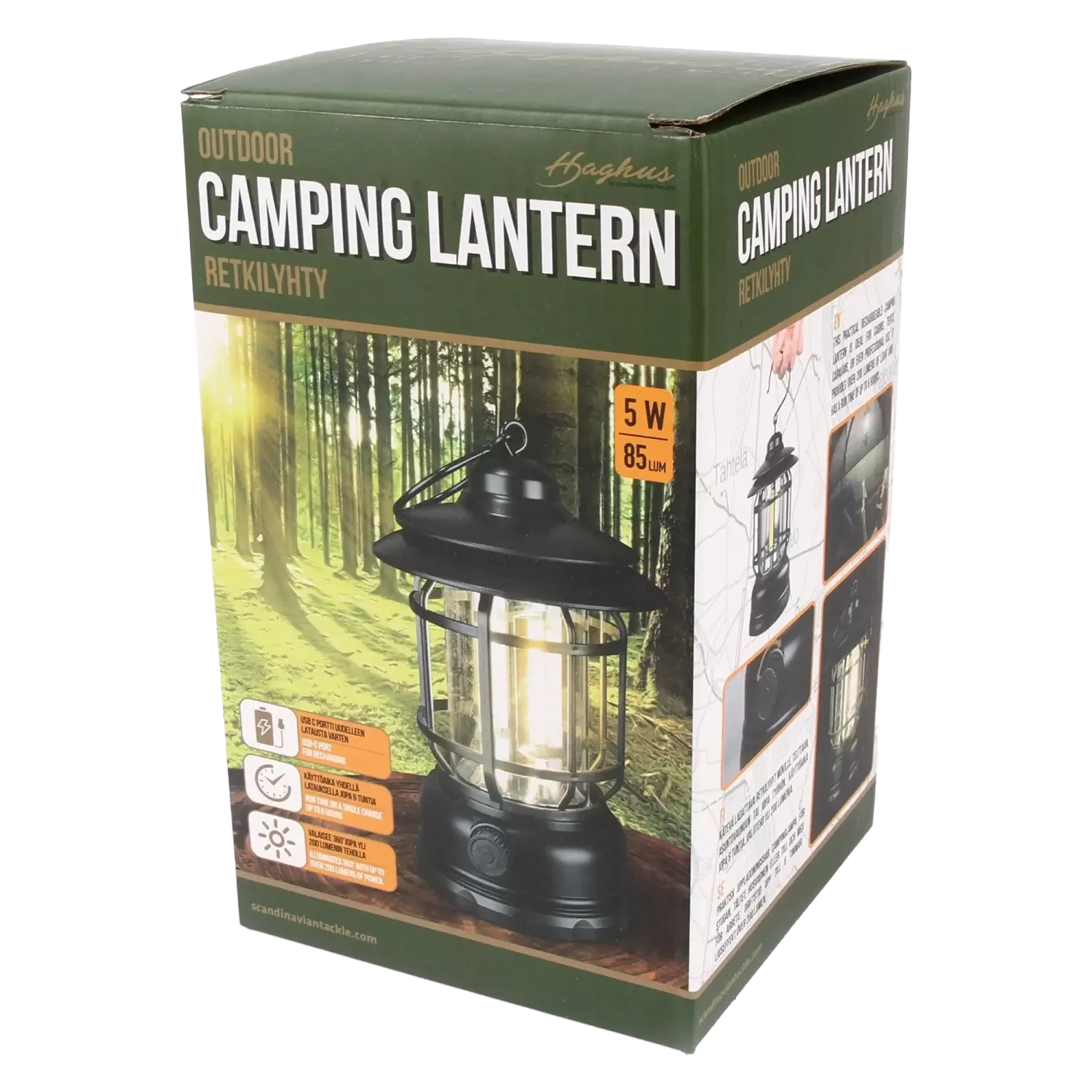 Haghus Campinglykta Laddbar 5W: Stark 5W belysning för lägret. Uppladdbar via USB, inga engångsbatterier. Pålitlig och robust friluftslykta.