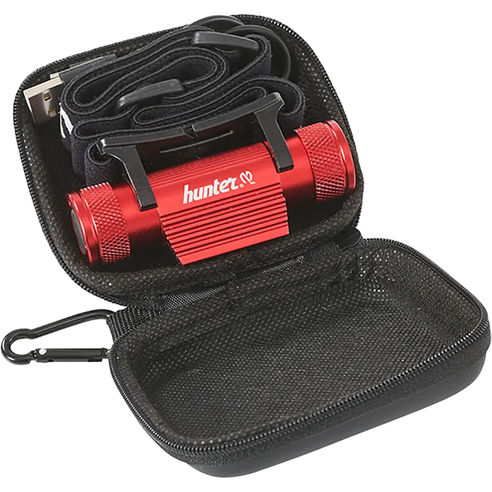 Hunter Pannlampa PL-22 är en stark, robust, vattenskyddad pannlampa som drivs av ett 18650 uppladdningsbart batteri