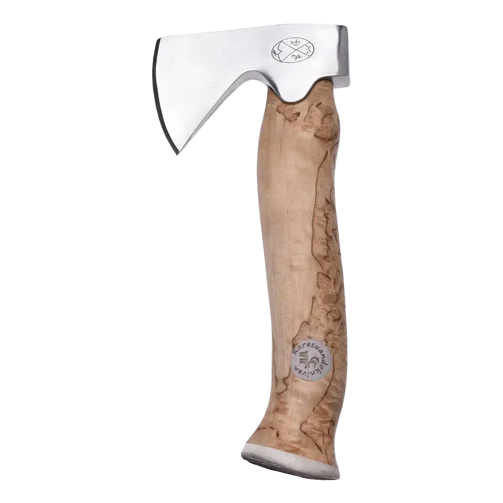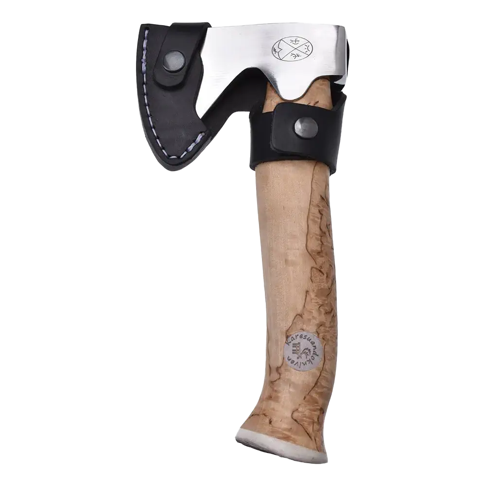 Karesuando Unna Áksu (liten yxa på samiska) är inte bara ett verktyg utan ett genuint stycke hantverk från nordligaste Sverige. Denna kompakta jaktyxa är speciellt framtagen för jägarens behov och är idealisk att bära med sig i bältet under långa passager i skogen. Med sin nätta storlek och enastående balans är den perfekt för allt från att stycka vilt till att tälja tändved för lägerelden.