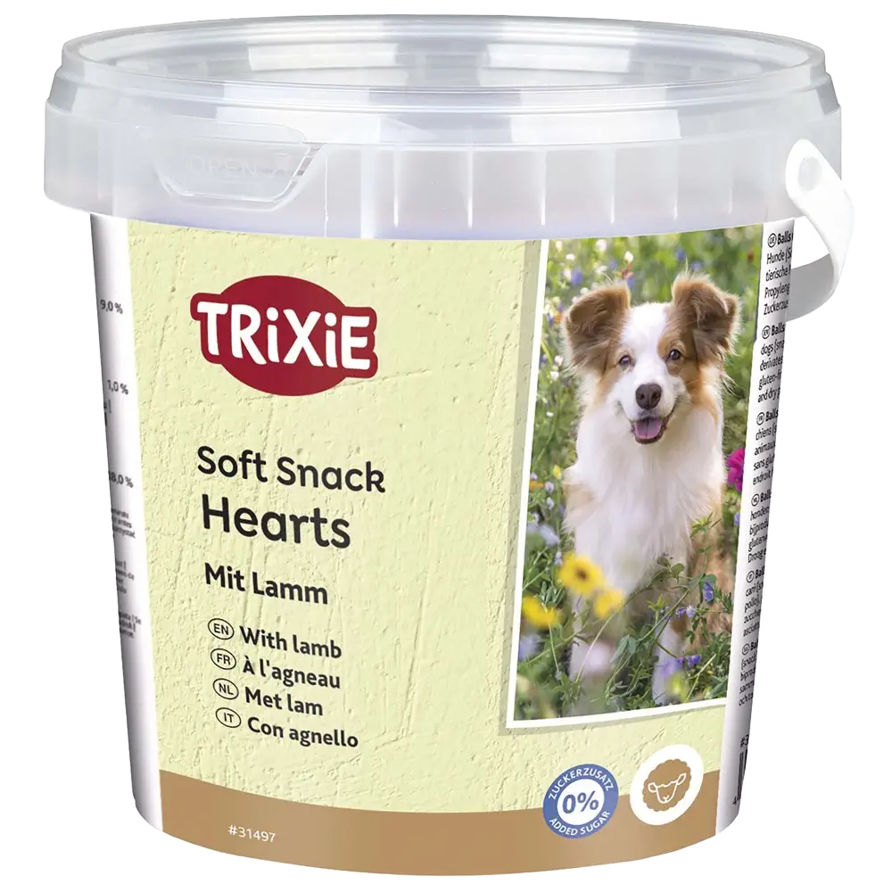 Soft Snack Happy Hearts från Trixie är ett populärt och smakrikt hundgodis, perfekt utformat som en mjuk belöning under träning, lek eller som ett extra gott mellanmål. Dessa hjärtformade godbitar är lätta att dela i mindre bitar om så önskas, vilket gör dem idealiska även för små hundar eller vid intensiv belöningsbaserad träning.