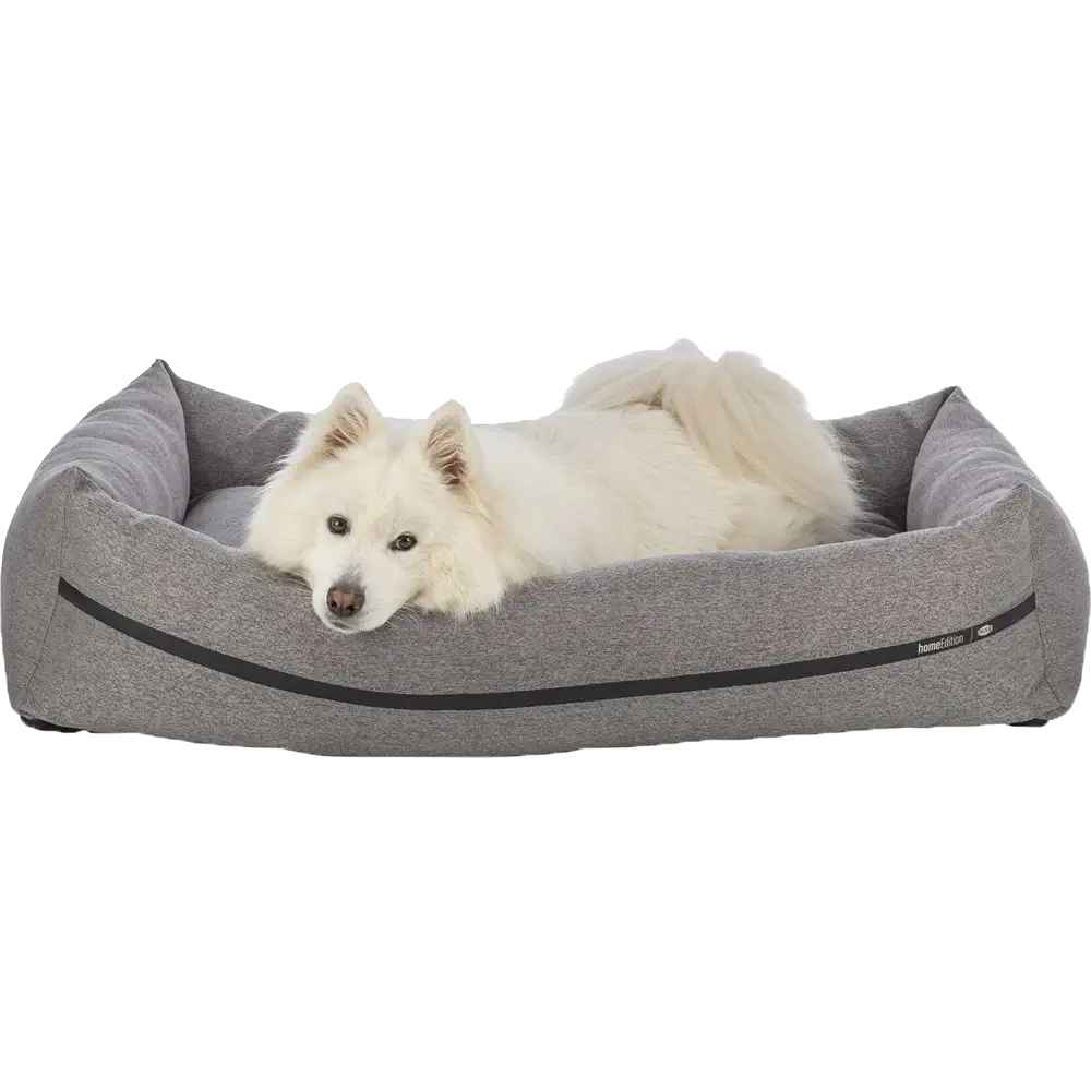 Bädden är utrustad med en mjuk fyllning som ger utmärkt stöd och isolerar mot kalla golv. De lätt upphöjda kanterna ger en känsla av trygghet och fungerar som ett bekvämt huvudstöd, vilket uppskattas av hundar som gillar att krypa ihop. Det slitstarka tyget är valt för att klara av vardagens slitage, och den gråa färgen är praktisk eftersom den döljer hundhår och smuts väl. Denna CityStyle bädd är dessutom enkel att hålla ren. Storleken är en perfekt mysplats för din hund efter en lång promenad eller ett träningspass.