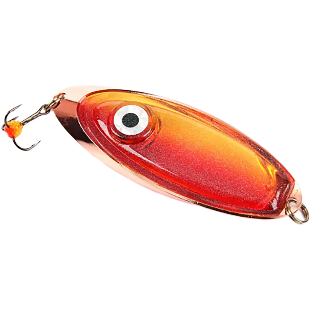 Lava/red skapar en extremt hög kontrast och stark visuell signal som rovfiskar har svårt att ignorera. Denna färg är känd för att prestera utmärkt både i klart vatten och i de mörkare djupen. Aurora-blänket använder ett inbyggt LED-ljus som avger korta, intensiva blixtar. Denna elektriska attraktion kombinerat med den heta Lava/red-färgen är oemotståndlig. 80mm-längden är en beprövad storlek för att selektivt locka till sig de större individerna av abborre och röding. Blinkblänket är tåligt konstruerat för att klara av kylan och alla påfrestningar som aktivt isfiske innebär.