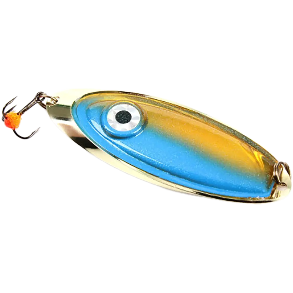 Denna färgkombination ger en stark visuell signal där blått effektivt penetrerar vattnet och gult/guld skapar en lockande kontrast. Aurora-blänket använder ett inbyggt LED-ljus som avger korta, intensiva blixtar. Denna elektriska attraktion skapar en oemotståndlig effekt och är en stor fördel vid aktivt pimpelfiske. 80mm-längden är idealisk för att selektivt locka till sig de större individerna av abborre och röding. Blinkblänket är robust konstruerat för att klara av kylan och alla påfrestningar som aktivt isfiske innebär.